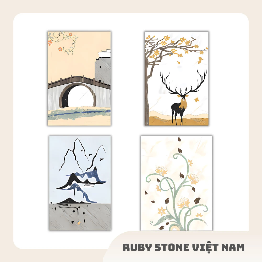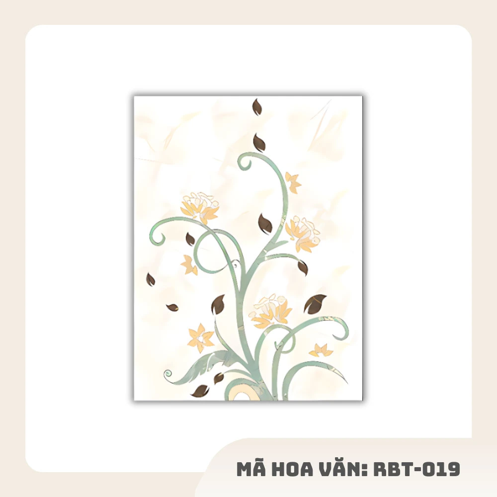 Bộ tuyển tập hoa văn RBT016 - RBT019 được tạo nên từ những hình ảnh thường thấy gần gũi với đời sống: sông núi, cỏ cây,... tạo nên một bức tranh tươi tắn và rực rỡ. Việc sử dụng các màu sắc tươi sáng sẽ mang đến không gian tràn đầy sức sống.