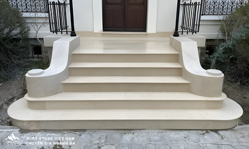 Lát đá bậc cấp từ đá Marble Crema Marfil