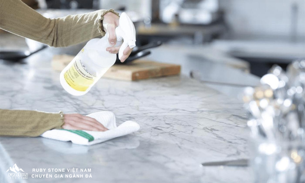 Dùng chất tẩy rửa chuyên dụng vệ sinh bề mặt đá