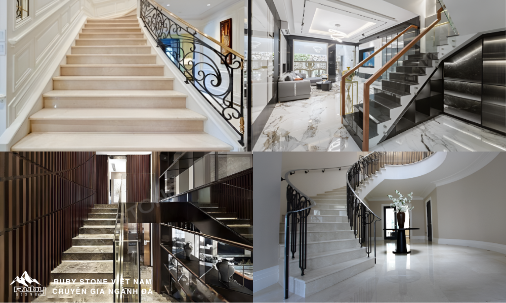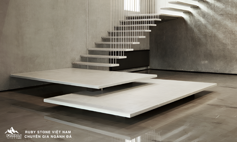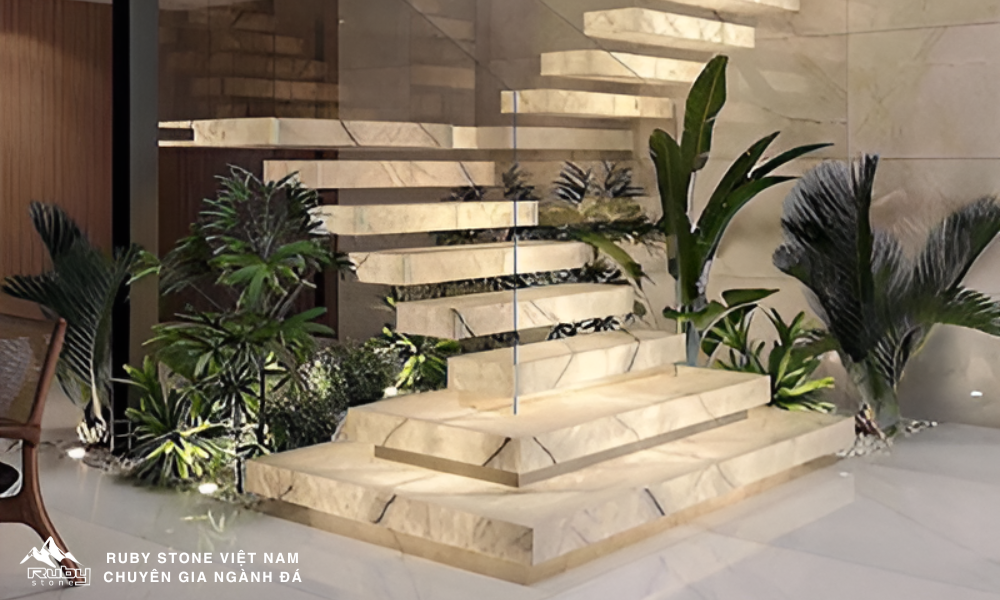 Đá cầu thang màu trắng: Tạo cảm giác rộng rãi, thoáng mát cho không gian.