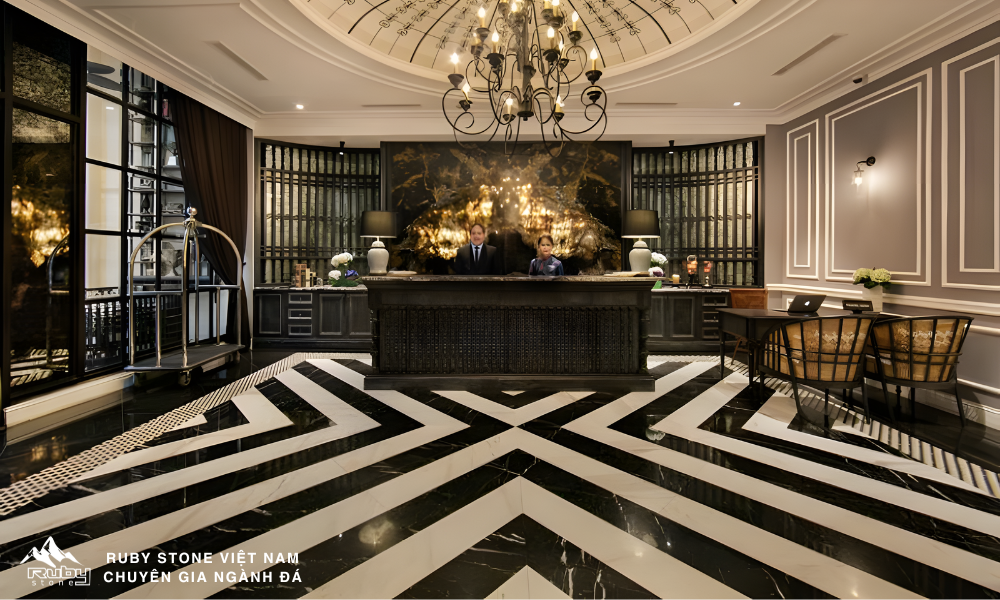 Ốp lát sảnh bằng đá tự nhiên tạo nên nét độc đáo cho không gian