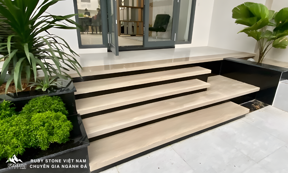 Bề mặt đá ốp bậc tam cấp nhẵn bóng, dễ dàng vệ sinh lau chùi